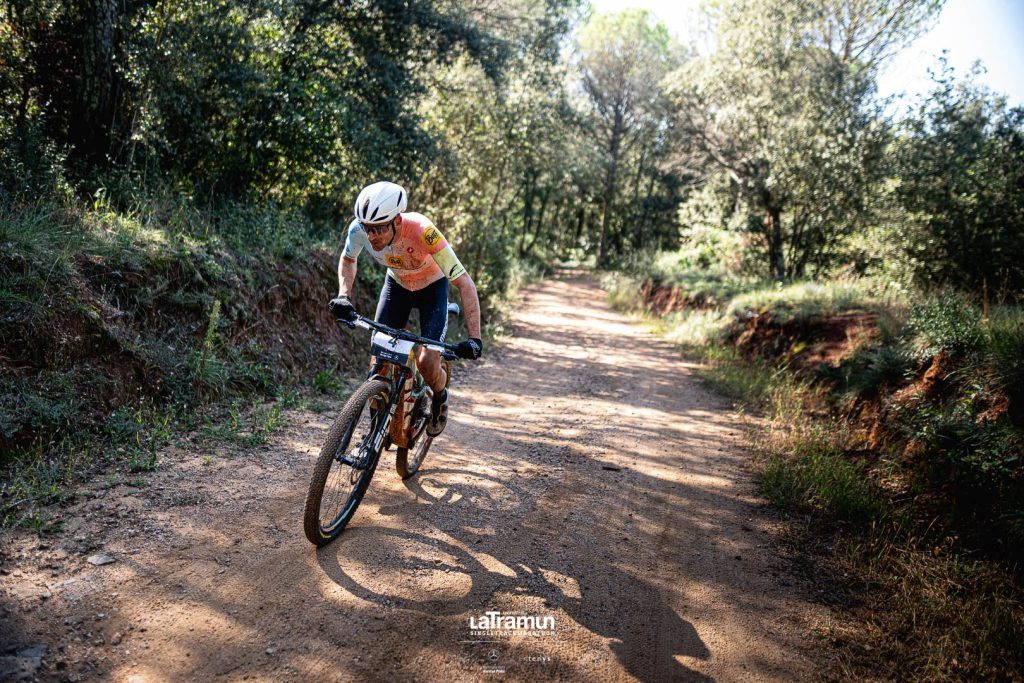 La Tramun empieza en la localidad gerundense de Les Planes d’Hostoles, con un primer tramo de asfalto que sirve para estirar el grupo antes de adentrarse en la montaña. La subida de los Arcous nos conduce hasta el llano de les Medes, desde donde una pista nos lleva hacia el Puig del Punt Rodó. Allí empieza la primera bajada técnica del día: el descenso del Noguerot, que nos lleva hasta Cogolls.